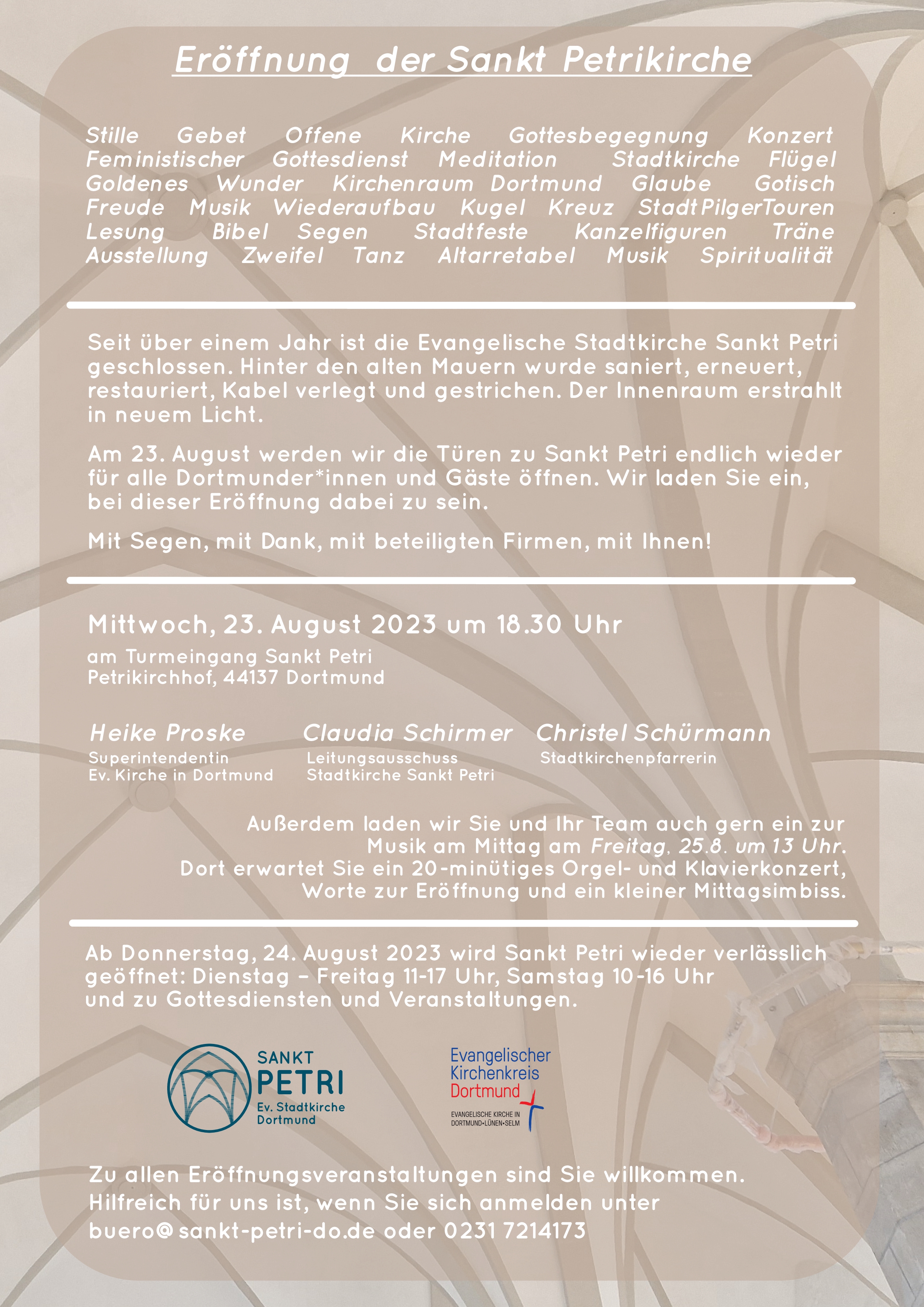 Nach langer Innensanierung, eröffnen wir die Petri-Kirche - gern mit Ihnen!
